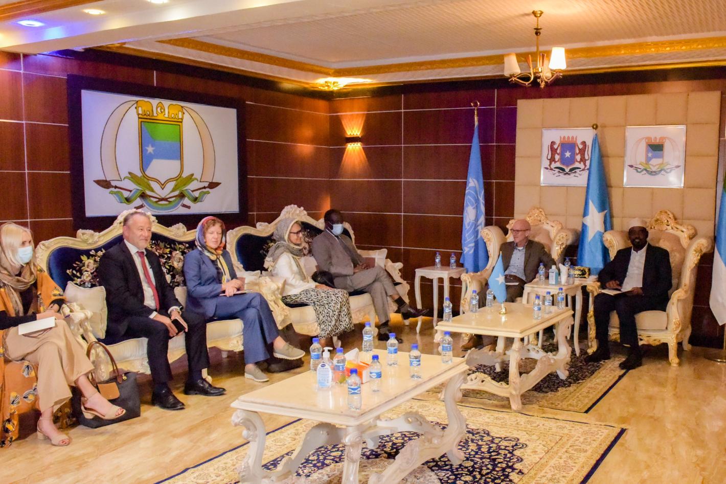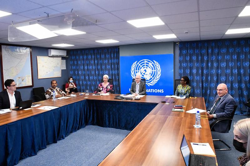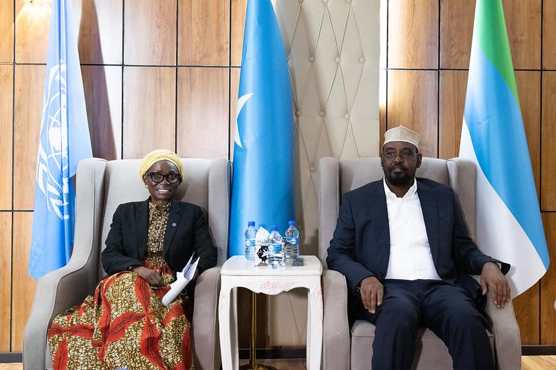 The UN Secretary-General’s Deputy Special Representative for Somalia, Anita Kiki Gbeho, meeting with Jubaland’s President Ahmed Mohamed Islam ‘Madobe,’ in Kismayo, on 19 October 2021.