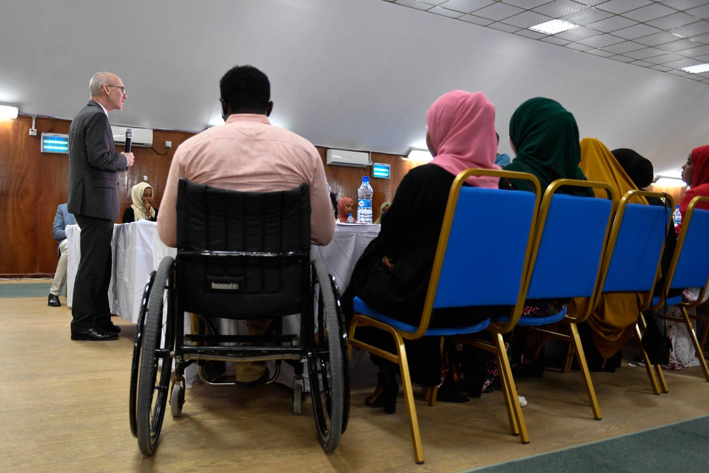 The United Nations envoy to Somalia, James Swan speaks during a dialogue organised by the world body for youth in Mogadishu, aimed to empower them to participate in politics, on 29 July 2019. UN Photo / Ilyas Ahmed