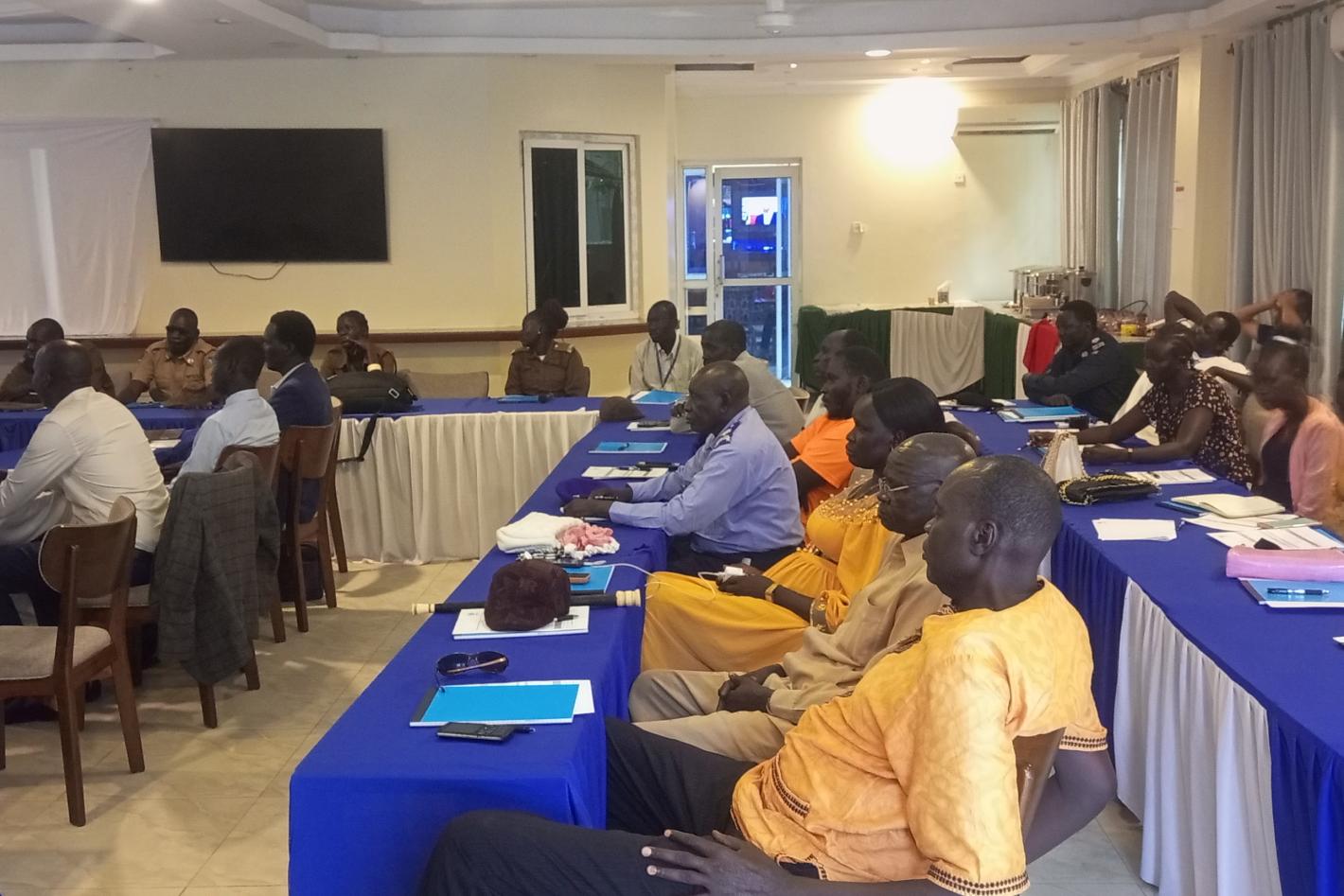 A two-day workshop hosted by UNMISS in Bor brought together some 40 participants to discuss ways and means to strengthen the criminal justice chain. Photo by Achol Kur/UNMISS