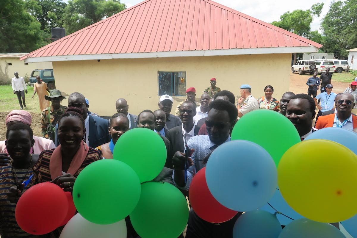 Festive parliamentarians cutting the ribbon to inaugurate Jonglei's new and UNMISS-funded legislative assembly hall in Bor. Photos by Mach Samuel, UNMISS.