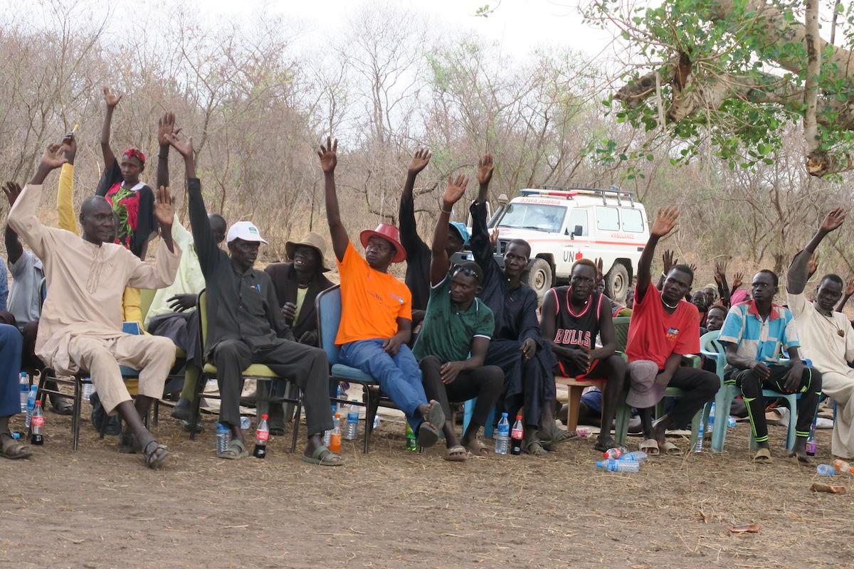 Voting for peaceful coexistence at an UNMISS-organized conflict resolution and reconciliation conference between previously hostile communities from Juba and Terekeka counties, respectively. Photos: James Sokiri/UNMISS