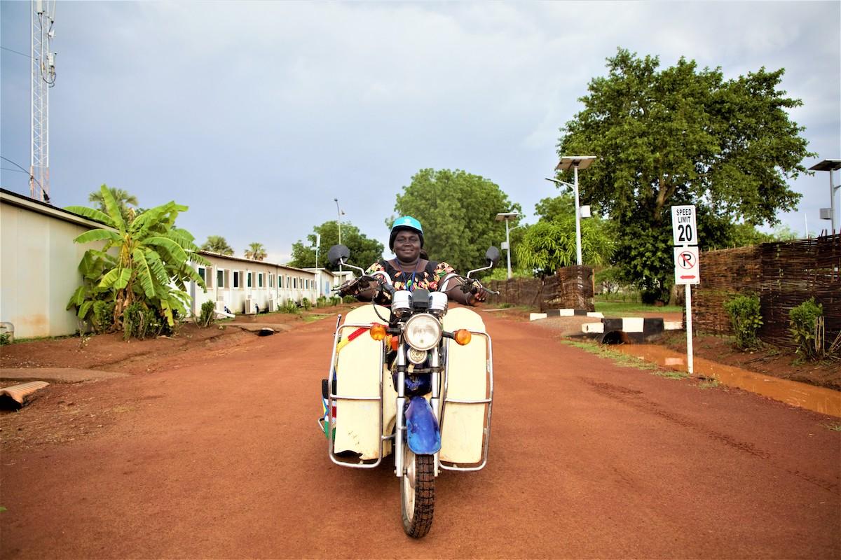 With her customized motorbike, Khana Akur Majak in Rumbek does not allow her disability to define her. Instead, she's a much-admired businesswoman and advocate of the rights of women and the disabled. Photos: Nina Zubovic Vignjevic/UNMISS