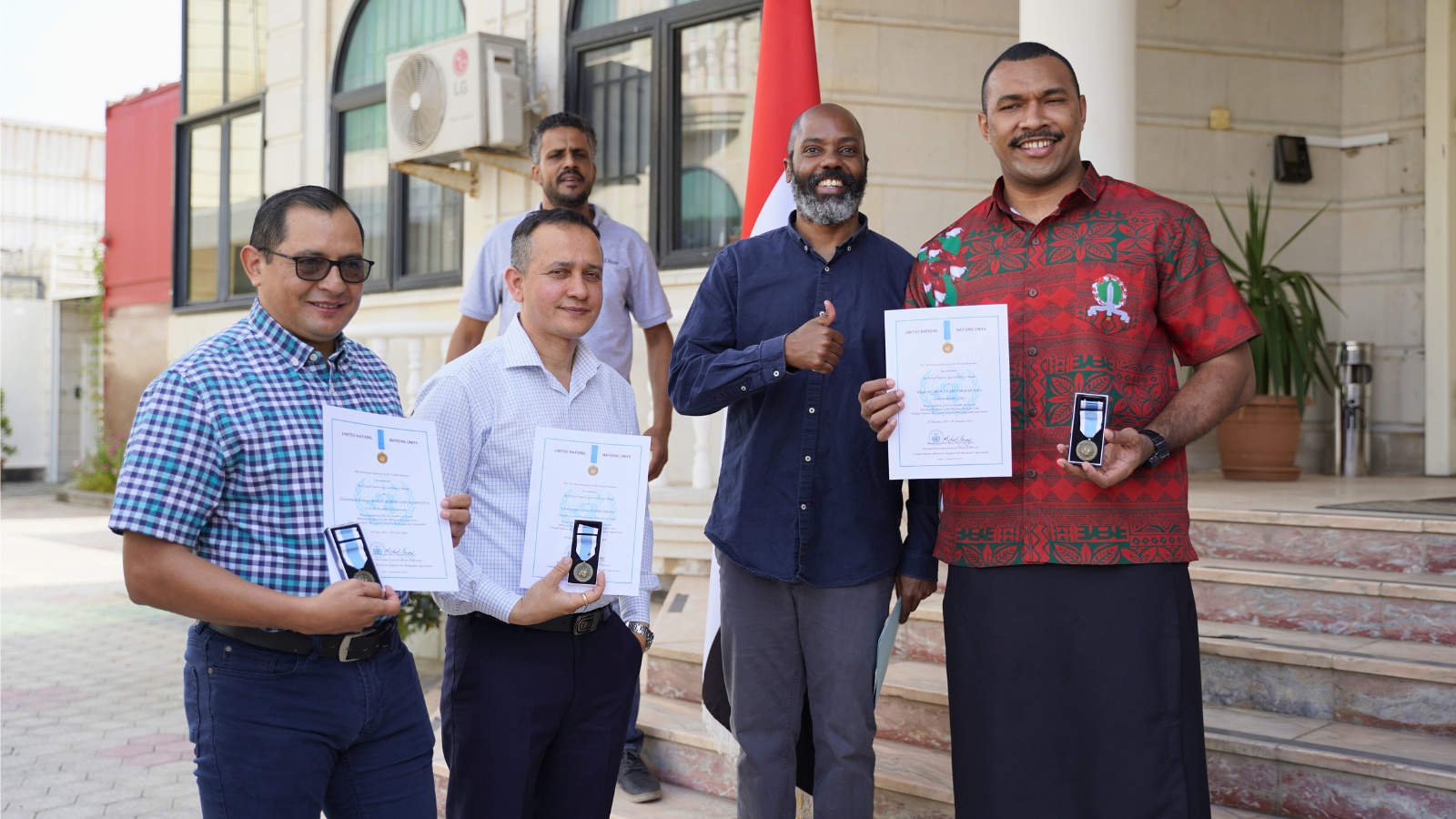 The recipients —Major Jiujiuwa Cati VAKALOLOMA from Fiji, Lieutenant Colonel Maxwell ESSUMAN from Ghana, Lieutenant Colonel Jorge Mario COFINO ZECENA from Guatemala, as well as Lieutenant Colonel Sashi THAPA and Lieutenant Colonel Krishna KHADKA Chhetri both from Nepal— were honored during a special ceremony that marked their commitment and merit in service that earned them the prestigious award.
