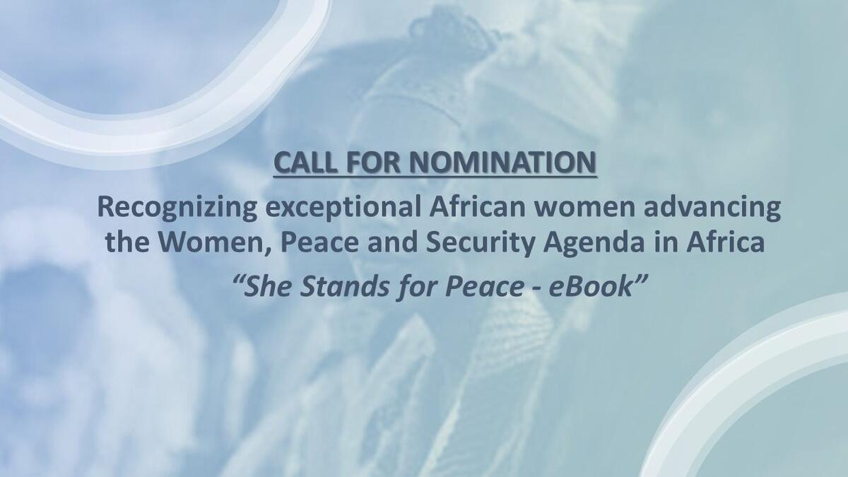 APPEL A CANDIDATURE POUR RECOMPENSER DES FEMMES AFRICAINES EXCEPTIONNELLES FAISANT AVANCER LA CAUSE DES FEMMES, DE LA PAIX ET DE LA SECURITE EN AFRIQUE « SHE STANDS FOR PEACE –EBOOK »