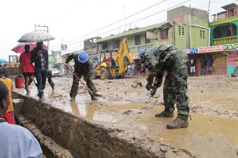 Un pont et quatre ponceaux sont en construction à Verettes et l’Estère, des communes du département de l’Artibonite, afin de faciliter la circulation des personnes et des denrées agricoles. Photo : Taïna Noster – UN/MINUSTAH…