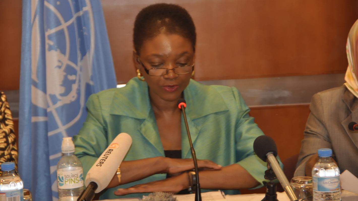 Elle est accompagnée par le Directeur exécutif de l’ONUSIDA, Dr. Michel Sidibé, et de la Sous-Secrétaire général à la sûreté et à la sécurité, Mme Mbaranga Gasarabwe.